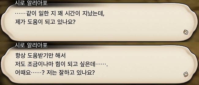 모험가를 따라 가려는 라하에게 '당신은 남아서 해야 할 다른 일이 있지 않냐'며 타이르는 등 '상사'를 대하는 태도 치고는 꽤...