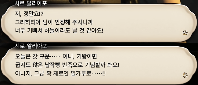 여담으로, 시로가 납작빵을 정말 좋아하는지는 모르겠지만 단골 거래 퀘스트 도중에 납작빵에 대한 언급이 꽤 잦은 편이다.