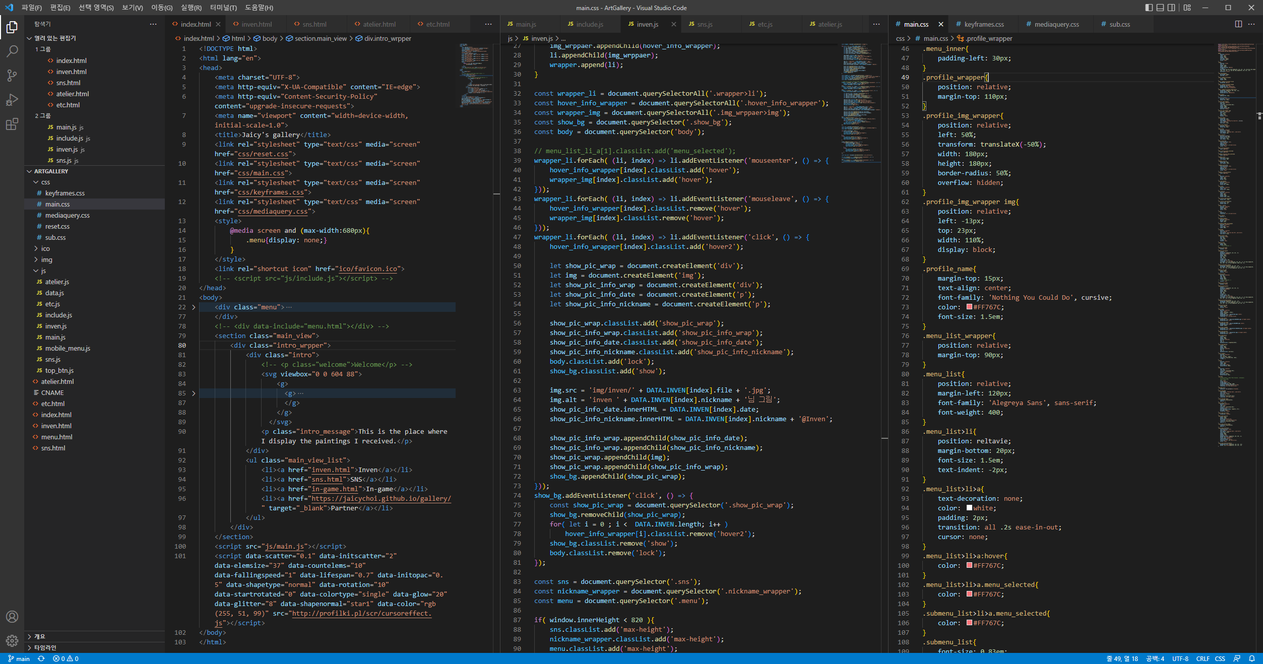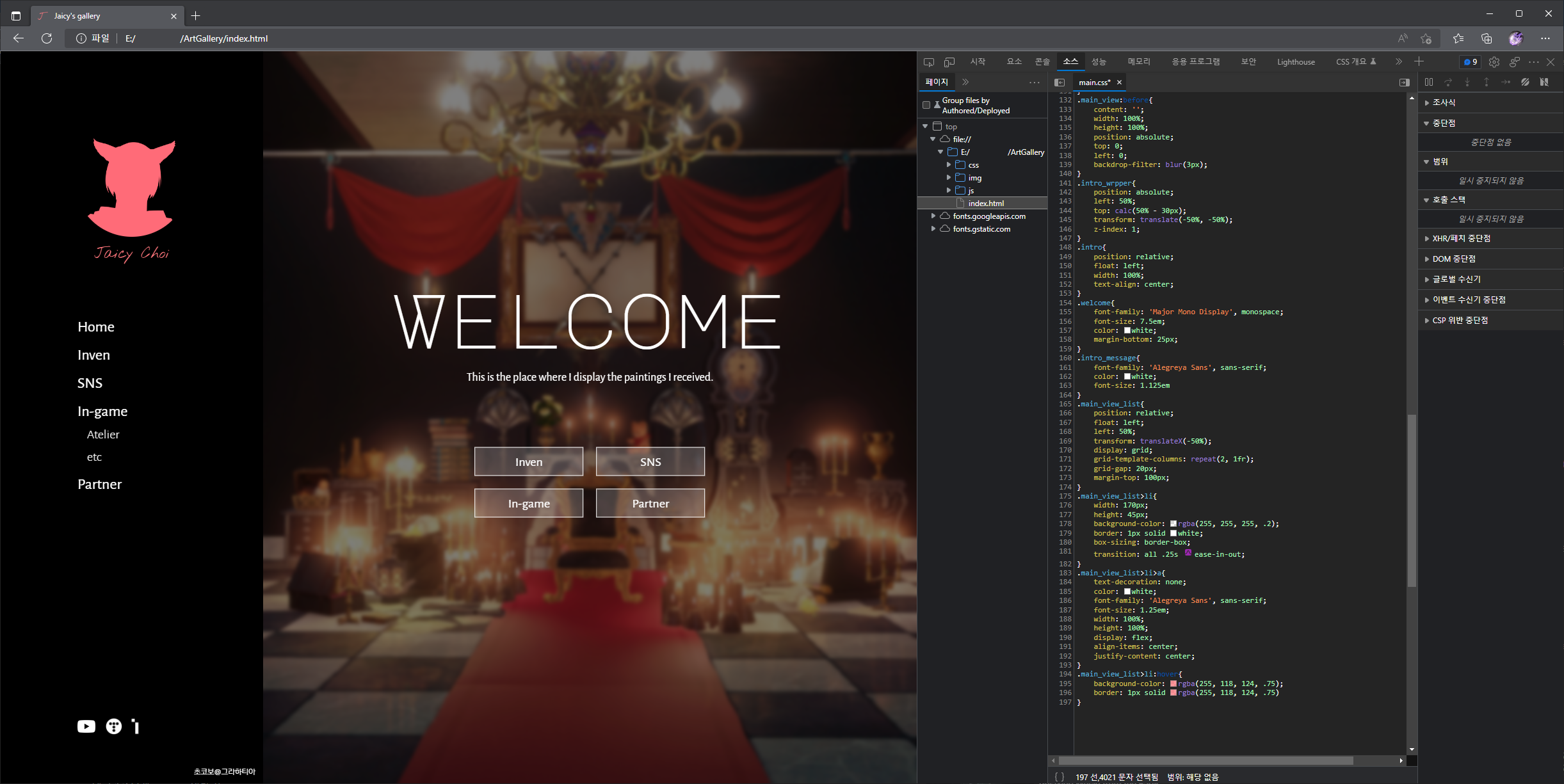 첫 번째 온라인 갤러리가 언약자의 그림을 모아둔 사이트여서, 이번에 만든 갤러리가 두 번째인 것. 저 사이트 만들 때도 꽤나 고생했다;