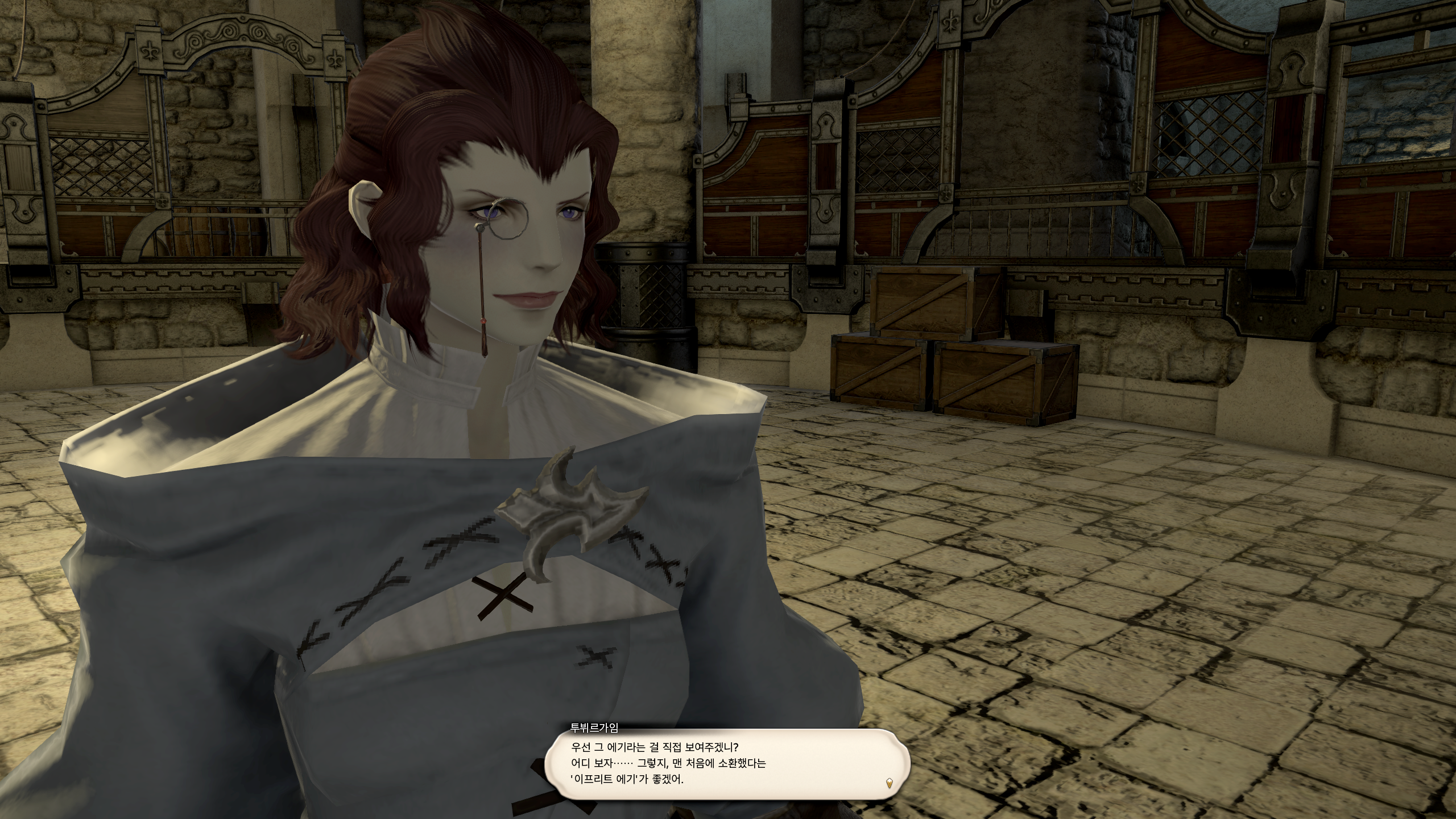 에기 변형 퀘스트는 비술사 길드의 '투뷔르가임'에게서 받을 수 있다.